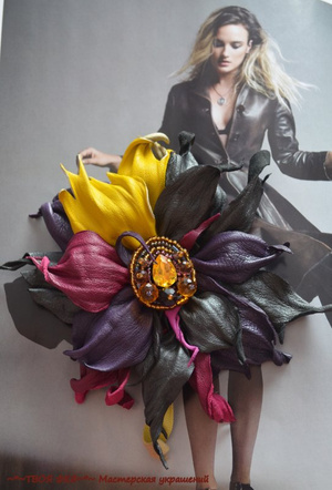 Броши из натуральной кожи. Описание каждой под фото.