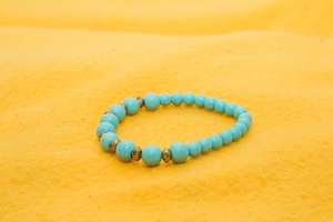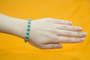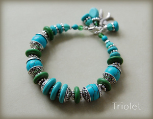 Браслет из бирюзы, подчеркнутой вкраплениями фурнитуры под медь. Авторская ручная работа. По поверьям, этот камень усиливает интуицию, способности, придает честолюбие, храбрость, проницательность, приносит счастье. Фото сделано на запястье 15 см. 200 руб.