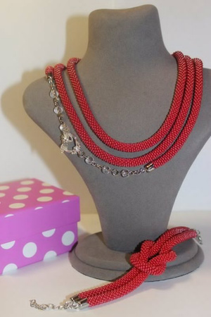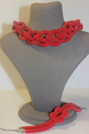неправильно себя измерила) из бисера. На запястье 17 см будет впритык. Цвет желтый с красным - 250 руб 2) Комплект "малиновые настроение" НОВОЕ - 1200 руб . Лариат длиной 136 см, на концах бусины из горного хрусталя и красивый замок-тогл - стрекоза. Браслет на запястье от 19см. Длина регулируется.