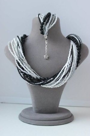 Нейтральное и при этом весьма симпатичное украшение подойдет Вам независимо от Вашего возраста и цветовых предпочтений. Вкрапления фурнитуры делают колье достаточно интересным, но не вызывающим. Отличная возможность разнообразить свой внешний вид без лишних затрат, всего лишь с помощью аксессуаров.