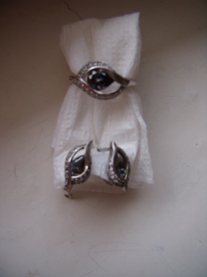 4. Комплект серьги и кольцо, кольцо не надето ни разу (большое, размер 19 или 20). Серебро, фианиты, аметист. 600 р.