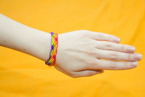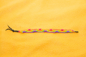 Яркий плетеный браслет-фенечка, 100 руб. Фото сделано на запястье 15 см.
