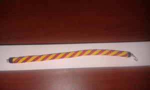 неправильно себя измерила) из бисера. На запястье 17 см будет впритык. Цвет желтый с красным - 250 руб
