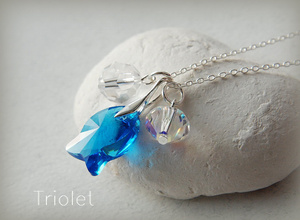 Кристаллы Swarovski, серебряные крепления, посеребренная цепочка (48 см).