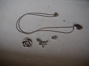 3. Цепочка серебряная тонкая с кулоном. Серебро. Б\у. 200 р. В нагрузку комплект кулонов, которые подходят к этой цепочке.