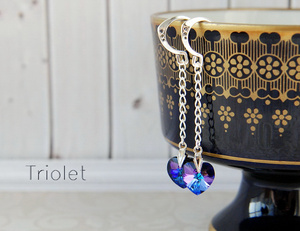 3. Серьги с цепочками. Сердечки Swarovski на серебряной фурнитуре, длина цепочки 2,5 см.