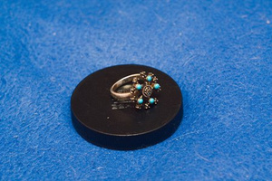 Серебро с вкраплениями бирюзы на кончиках. Размер кольца 19. Можно предварительно примерить. 450 руб.