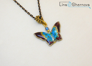 Подвеска-стрекоза на искристом колье (стекло с ювелирной огранкой).