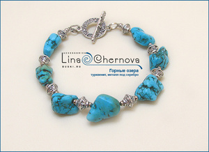 Браслет под бирюзу в серебре (турквенит, металлофурнитура).