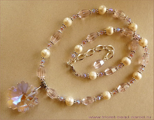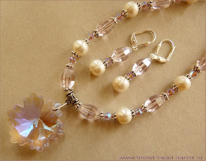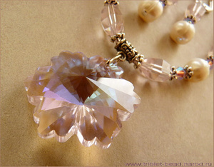 Подвеска Celestial Crystal® и граненое стекло нежного холодного розового цвета, кристаллы Сваровски цвета Rose AB2X, натуральный жемчуг. Серьги на посеребренных застегивающихся швензах. Кулон переливается фиолетово-синими отсветами, точно так же, как и кристаллы Сваровски. Очень сильно сверкает:)