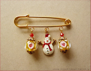 Новогодняя декоративная брошь-булавка "Снеговичок".