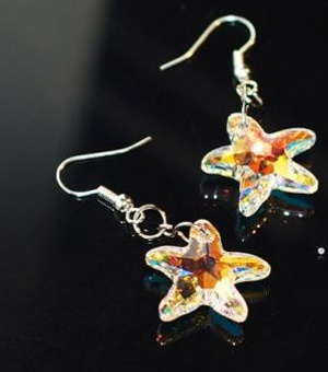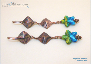 Серьги с чудесным лэмпворком в виде морских звезд и шикарной фурнитурой под старую медь.