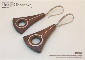 Серьги из палисандрового дерева, инкрустированного сталью. Длина серег 7 см. Основа серег - бижутерный сплав под серебро.