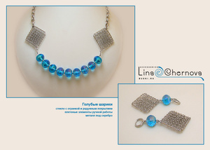 Комплект с искристым голубым стеклом.