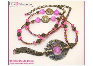 На запястье обхватом ~17 см. Могу чуть-чуть уменьшить или почти неограниченно увеличить до нужного размера.Влюбленная рыба-фуксия (750)