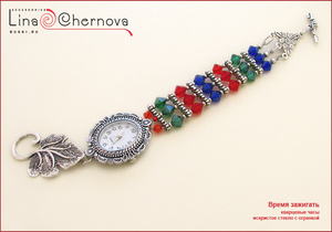 Кварцевые часики с ярким искристым браслетом и асимметричной застежкой, подчеркивающей оригинальность этого аксессуара.