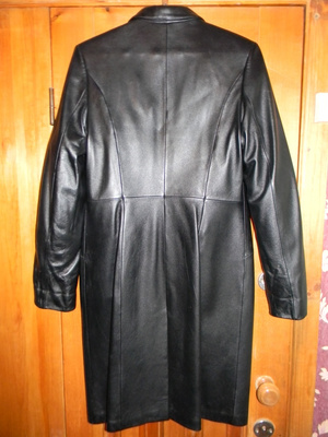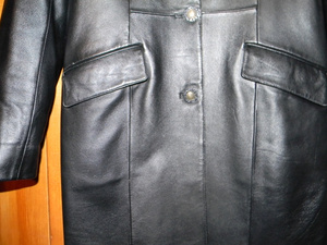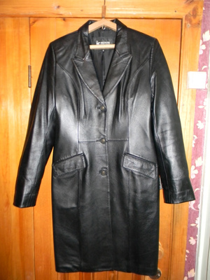 Плащ кожанный, размер 46, не уверен, на этикетке (ХL). Цена - 1000