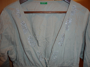4. рубашка-туника пляжная Benetton, р. 44-46 (регулируется за счет завязок), болотного цвета, с вышивкой бисером, х/б, состояние идеальное, 350р.
