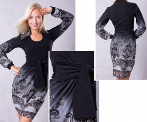Меня,как обладателя пышных форм, поразил его красивый, можно сказать, даже секусуальный вырез на спине. Юбка- баллон,что практично для грушевидной или яблочковой фигуры. Длина -закрывает коленочки, но не скрывает щиколотки