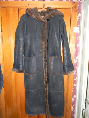 Также продам кожаное пальто, на рост 160 см и ниже, длина чуть ниже середины голени. Размер 44, на узкоплечих. Можно и 42 померить попробовать. Большой, роскошный песцовый воротник (отстёгивается). Пальто нуждается в покраске, есть потёртости. Рукава расклешённые немного, выглядит красиво. Подклад по телу на синтепоне, в рукавах - без. На погоду ...-2...+10. Пальто смотрится красиво, элегантно. Цена: 1000 рублей.