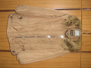 1. Продам теплую куртку на синтепоне. Капюшон отделан мехом. Цвет золото-коричневый - очень красивый!. Размер 48-50. Цена 700 руб.