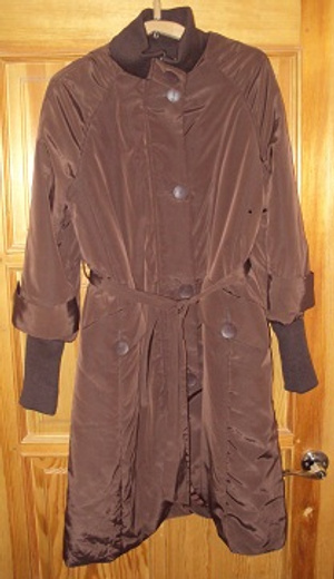 2. Продам плащ-пальто. Цвет бордо. Ткань плащевка. Современная модель. Капюшон трансформируется в воротник стойку. Размер 46-50. Цена 400 руб.