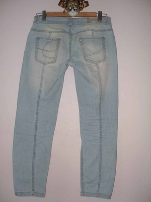 Продам джинсовые капри (длина 7/8, под сапожки) Terranova, р-р 42, сзади эффектные швы, нежно- голубого цвета, одевала пару раз, отличное состояние. 430 р.