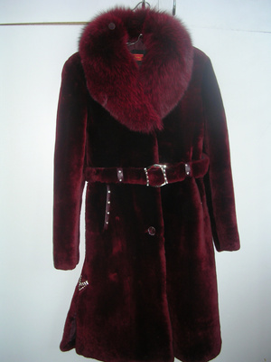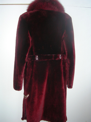 Эффектная мутоновая шуба яркого бордового цвета с шикарным песцовым воротником, пояс, шлевки и карманы декорированы стразами, по бокам небольшие разрезы, также отделаны цепочкой со стразами. Размер 44, лучше будет на рост от 164см. У меня 160см, поэтому немного талия не на месте. В связи с этим шуба носилась неполный 1 сезон. Прошу 5000руб.