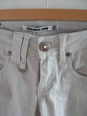Продам джинсовые капри (длина 7/8, под сапожки) Terranova, р-р 42, светло-серого металлического цвета, отл сост. 420 р.