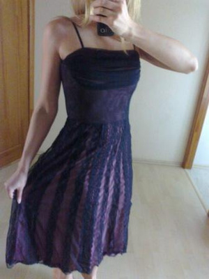 Приобретено на американском сайте Ideeli.com во время ред-сейла. Приобретено за 1800 рублей. Хочу вернуть 1400руб. Качество американское, очень достойное. Ткань - красивая, насыщенно синего цвета . По паспорту Royal blue.(Оно так и есть, действительно королевский). Обливаясь слезами, решилась таки продать его через пол-года после покупки. Потому что оно так все вытачено аккуратно и со вкусом, что резать его,даже и портнихи, было бы неуважительно к его качеству.Меня,как обладателя пышных форм, поразил его красивый, можно сказать, даже секусуальный вырез на спине. Юбка- баллон,что практично для грушевидной или яблочковой фигуры. Длина -закрывает коленочки, но не скрывает щиколотки