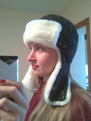 4. Ушанка для леди 380 р (белый мех, верх – тёмно-синий с люрексом)