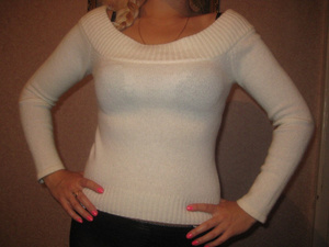Беленькая Размер 44-46,тепленькая,мягенькая,в составе есть ангора,можно носить на плечах или оголив плечи,носила мало,300р.