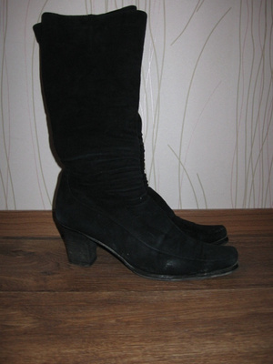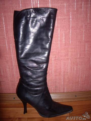 2. Продам сапоги, б/у, р-р 36-36,5, кожа натуральная, цвет черный, каблук 9см, голяшка не на худую ногу, прошу 700.