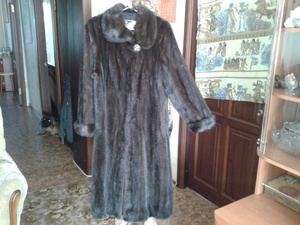 Пальто кожаное с отстёгивающимся песцовым воротником, покрой немного трапецией, цвет коричневый, р. 48-50, длина 127см, длина рукава 62см. Прошу 2000т.р. торг