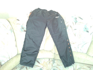 Замеры: в поясе 95 см. (это не обхват талии, а чуть ниже), по бедрам 115 см., длина штанины от пояса 108 см.