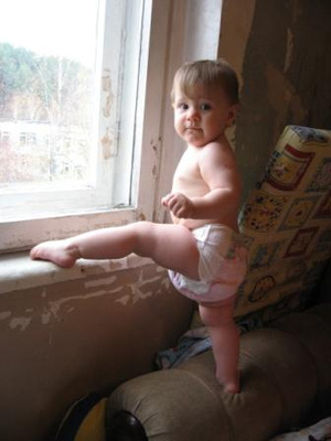 А вот так у нас Аня в окошечко смотрит. Муж говорит на каратэ отдадим, а я говорю мож балет?