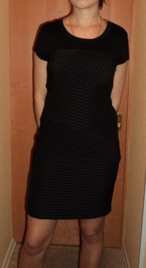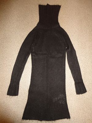 Черное теплое платье, с разрезм сбоку, в красивые узоры. Белорусское. Состав 30 %-шерсть. 70 % - синтетика. На рост от 164 до 178 см. К нему прилагается металлический серебристый пояс.Платье идет по фигуре, на фото этого не видно. Размер 48-50. Цена -600 руб.