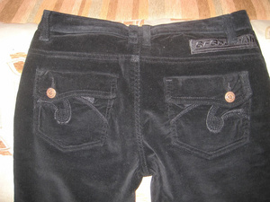 продаю вельветовые джинсы CROWN черные 46 р-р на рост 170, в хорошем состоянии (не вытерты, не вытянуты, все кнопки и пуговицы на месте) за 250 рублей. Сзади на карманах - вышитые строчки