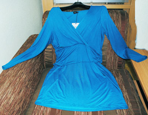 Нарядная кофточка из легкой, но прочной, почти прозрачной ткани, со вставкой на груди, чтоб не просвечивало, глубокое декольте,по декольте пайетки, длинные ассиметричные рукава, внизу у кофты сбоку завязывается интересный узелок. Размер 46-48. Цена 400 руб.