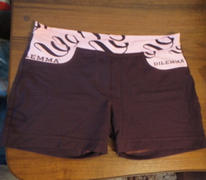 Тянущиеся шортики, тоже одеты 1 раз. Красивого темно-фиолетового цвета. Размер от 44го до 48го.