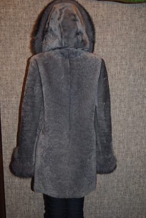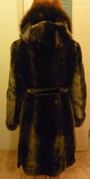 Шуба мутоновая, размер 42-44, рост 170 см. Красивый песцовый капюшон.