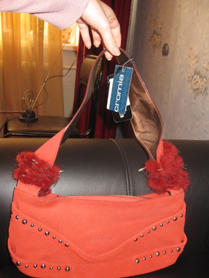 Сумочка итальянской фирмы CROMIA, новая. Этикетки, чехол для хранения. Замша с норковой отделкой, которую при желании можно отстегнуть. 1 600р.