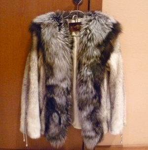 Шуба ношена три полных сезона - состояние соотвествующее (есть небольшие потрертости + где-то потеряла пуговицу и забыла пришить)