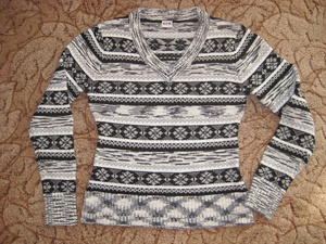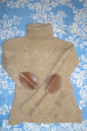 1.Очень тёплый свитер с кожаными заплатками на локтях. Размер S-M. Цена 400р.