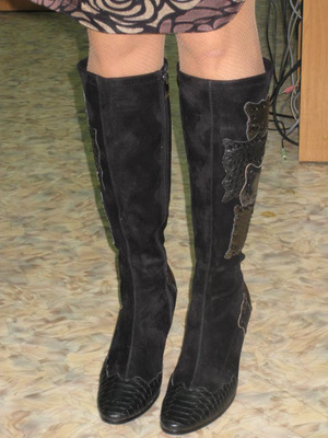 1) верх: натуральная кожа (замша); подошва: износостойкая резина. Размер 40 (длина по стельке 26,5 см) Цена 600 рублей