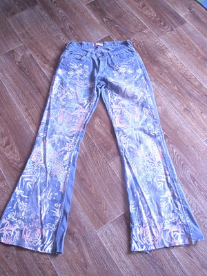 4. Джинсы расписные. Размер 42-44. Низ обрезан на 164см. с каблуком и не обработан. Сзади просто голубые. Состояние отличное.