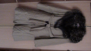 Демисезонное пальто 44 р-р, цвет черный, сшито из плащевки, внутри вставлен утеплитель из тонкого синтепона, воротник и манжеты из чернобурки. Манжеты и воротник отстегиваются. При росте 174 см длина закрывает колени. (2000 руб)