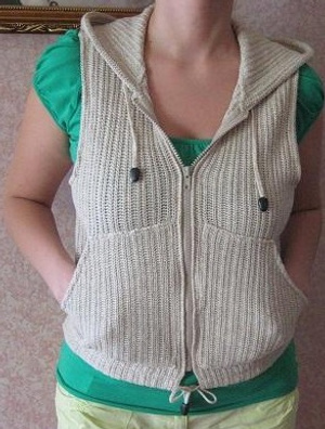 Жилетка НОВАЯ,с капюшоном,из льна.