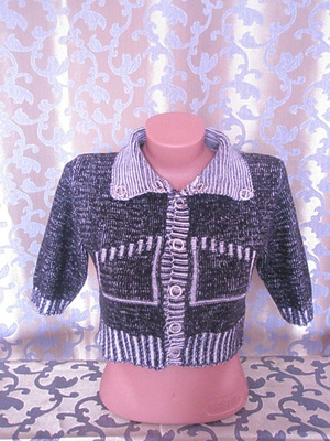 2. Трикотажная кофточка с кожаным декором на рукавах и посередине. Размер 42-44-46. Состояние оч. хорошее.