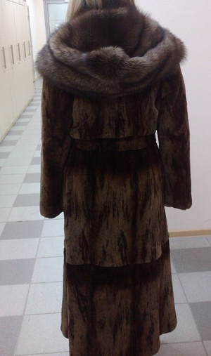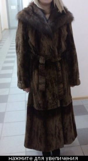 Продам мутоновую шубку, в хорошем состоянии. Очень теплая, длинная, с капюшоном, с поясом. По бокам шлицы. Отделка капюшона и рукавов - мутон.